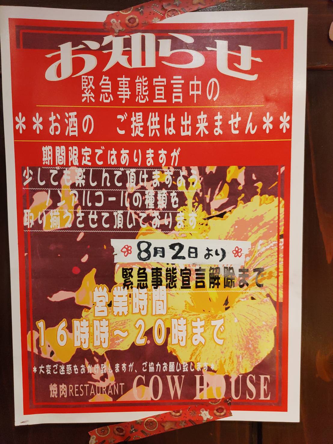 営業時間は 緊急事態宣言解除まで20時まで営業です。