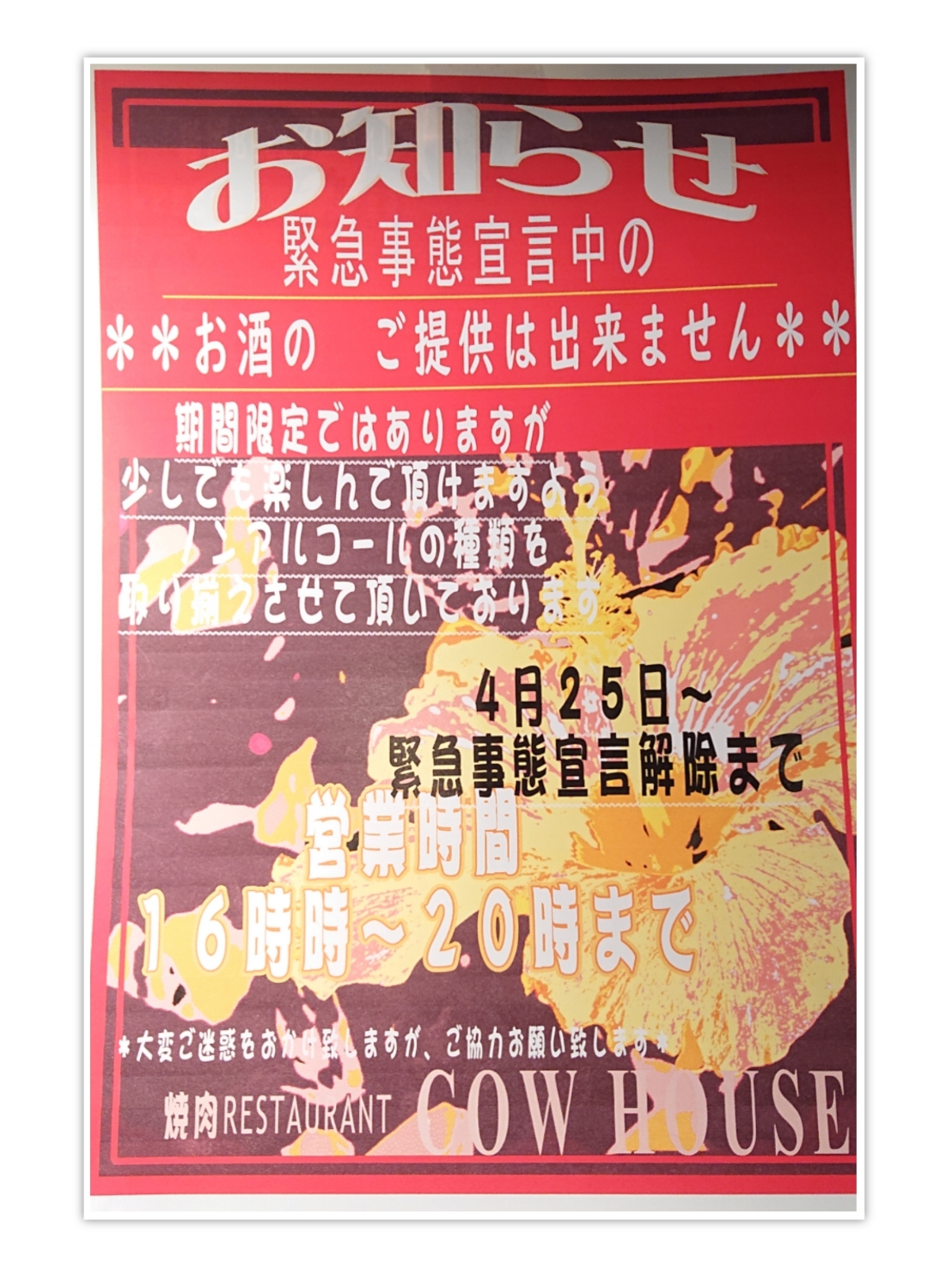 ★4月25日発令の緊急事態宣言に伴うお知らせ★